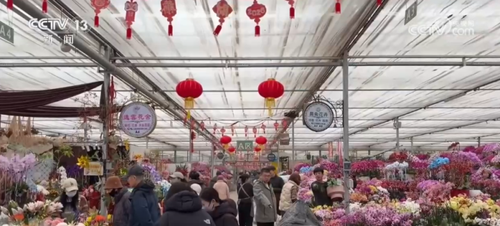 在广西南宁,增添喜庆的装饰品和鲜花成为年货市场里的“抢手货”。