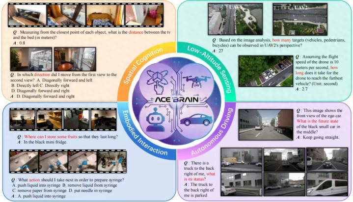 据悉,ACE-Brain-0 首次打破汽车、机器人、无人机等不同本体壁垒,贯穿空间认知、自动驾驶、低空感知、机器人交互,重新定义了物理世界智能的技术底层逻辑。